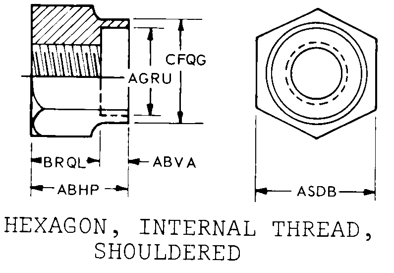 | STYLE DESIGNATOR | C24 HEXAGON, INTERNAL THREAD, SHOULDERED |