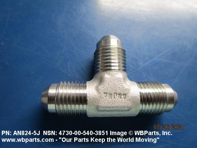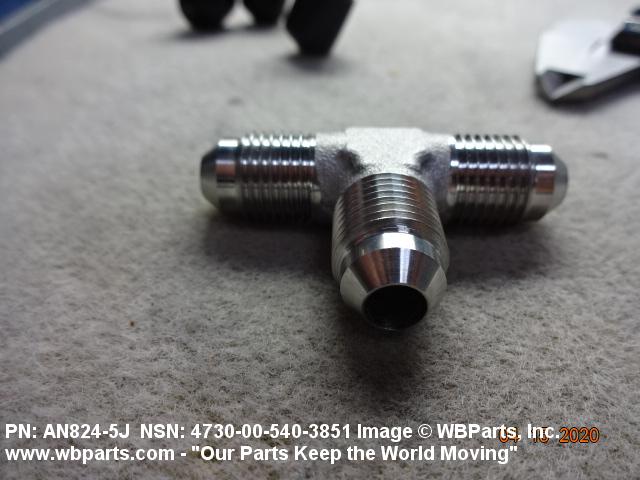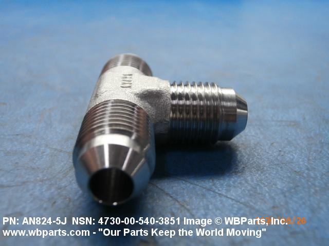 4730-00-540-3851 A fitting having three connections with the branch connection fixed at 90 degrees (1.5705 radians) to the run. The connections have machine threads (straight threads other than pipe or hose series) designed to accommodate a tube, or are unthreaded and designed to accommodate a tube. It may have side inlet(s). It is used as a junction at the intersection of a tube or tube fitting.