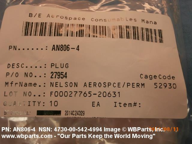 | AN806-4 | 81352 | AIR FORCE-NAVY AERONAUTICAL SPECIFICATIONS |