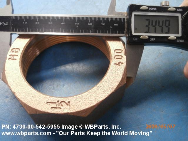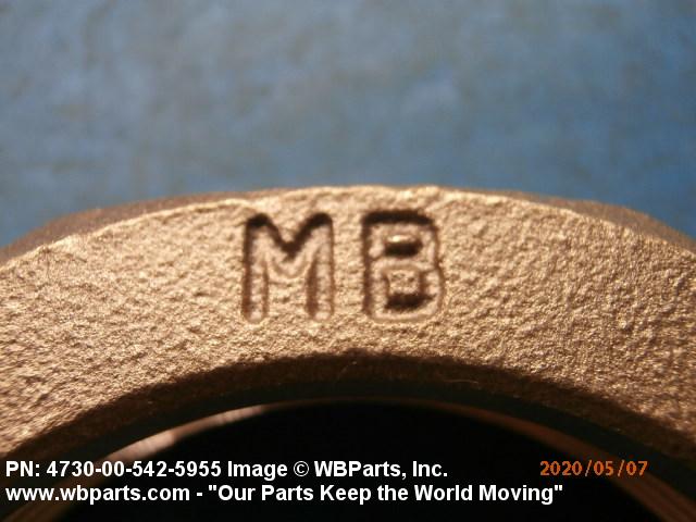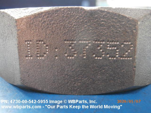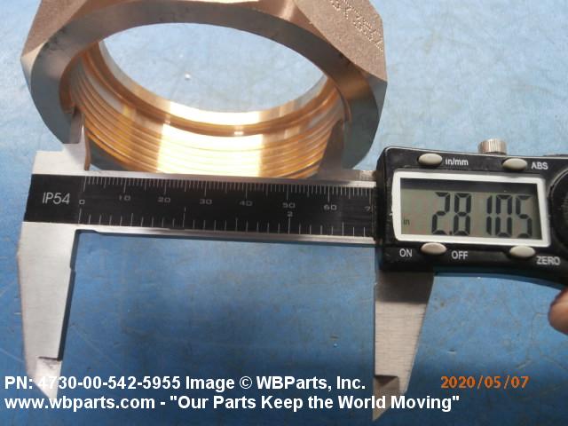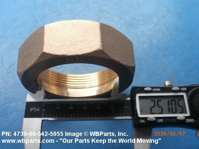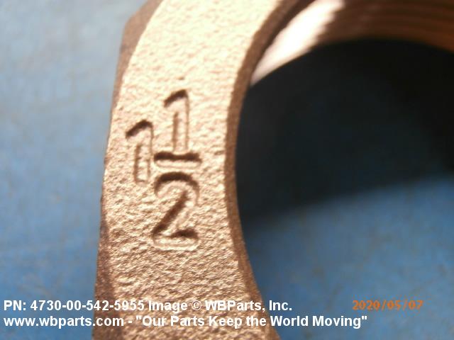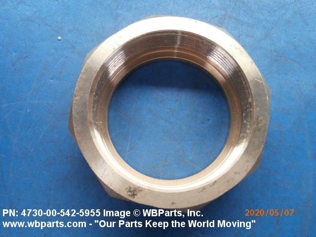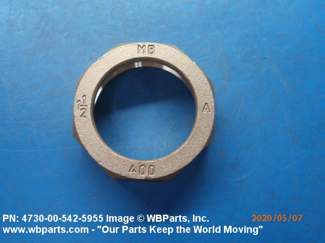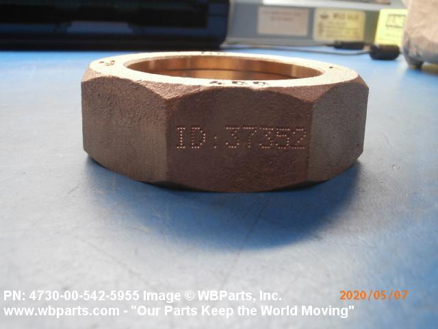 4730-00-542-5955 An internally threaded nut which has an internal seat or shoulder designed to engage the nut retaining flange of a union tailpiece. The threaded portion is used to engage the thread piece of a union, union elbor or the like. Excludes NUT (1), TUBE COUPLING.202109000004730000000