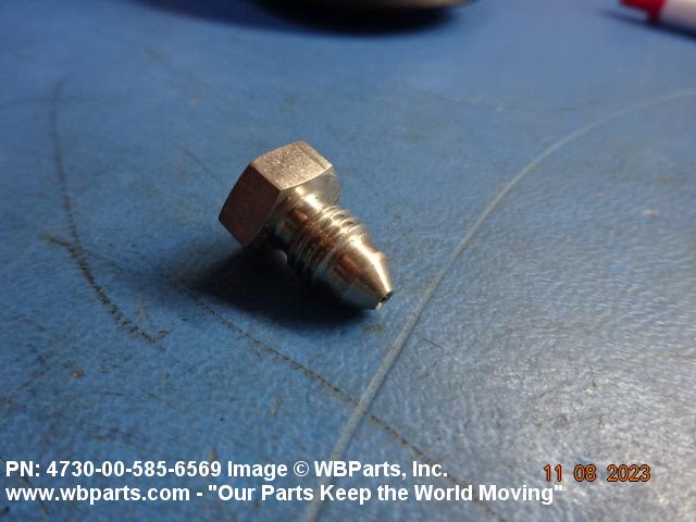 4730-00-585-6569 A tube fitting with external threads other than pipe or hose series having an internal or external seating surface. The seating surface is designed to form a seal when mated with other tube fittings to retain fluids under pressure during equipment operation. For items without a specific seating surface which are designed to utilize a gasket or packing under the head for forming a seal, see PLUG, MACHINE THREAD.