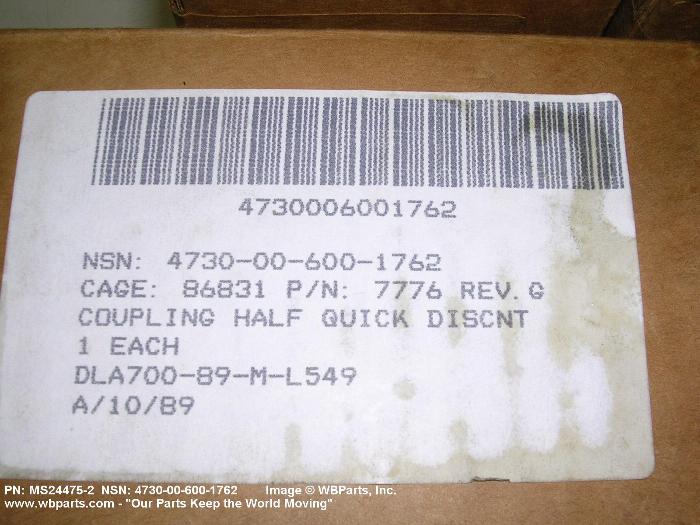 NSN 4730-00-600-1762 MS244752, MS24475-2, MILDTL25677