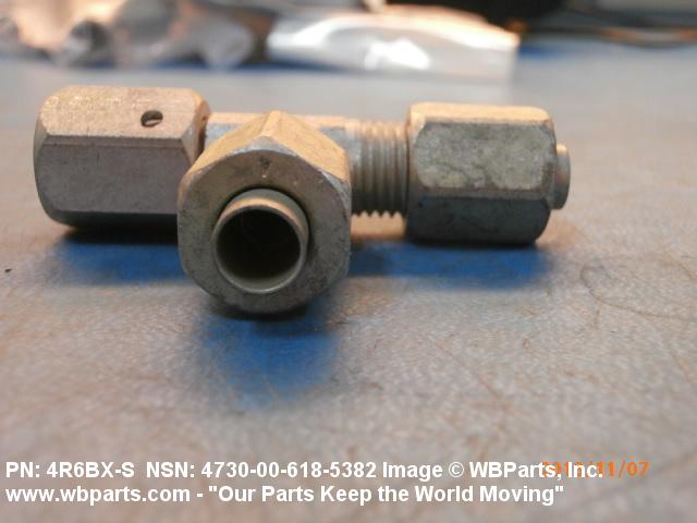 4730-00-618-5382 A fitting having three connections with the branch connection fixed at 90 degrees (1.5705 radians) to the run. The connections have machine threads (straight threads other than pipe or hose series) designed to accommodate a tube, or are unthreaded and designed to accommodate a tube. It may have side inlet(s). It is used as a junction at the intersection of a tube or tube fitting.