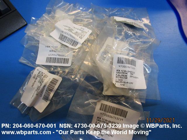 Part Alternates: 204060670001, 204-060-670-001, 2040606701, 204-060-670-1, 4730-00-675-3239, 00-675-3239, 4730006753239, 006753239