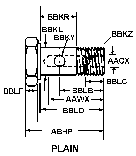 4730-00-679-5682 A boltlike item having a concentric hole along the longitudinal centerline which may extend a part or the full length of the item. It has a hole(s) perpendicular to the axis, joining or passing through the concentric hole along the longitudinal centerline. The item is designed to distribute fluid, air, or lubricant through its body to a mating item, such as a CONNECTOR, MULTIPLE, FLUID PRESSURE LINE, bearing(s), bushing(s), or the like. The item must be capable of attaching to a block fitting and/or a tubing line or be designed to accommodate a FITTING, LUBRICATION. Excludes BOLT, INTERNALLY RELIEVED BODY; BLEEDER VALVE, HYDRAULIC SYSTEM; and BUSHING, MACHINE THREAD. See also PIN, VEHICULAR LEAF SPRING SHACKLE.