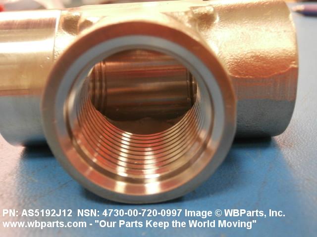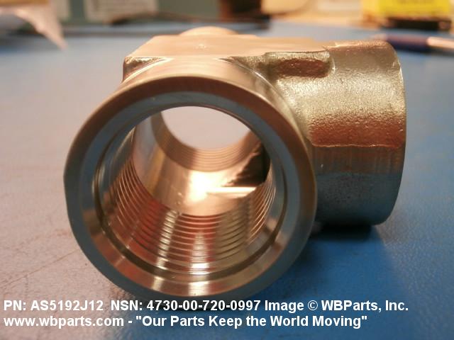 4730-00-720-0997 A fitting having three connections with the branch connection fixed at 90 degrees (1.5705 radians) to the run. The connections have external or internal machine threads (straight threads other than pipe or hose series), and are designed to facilitate a gasket, preformed packing, washer, or the like, to form a seal at the boss. It may have side inlet(s). It is used as a junction at the intersection of a boss or boss fitting on items such as tanks, housings, valve fittings, and the like. Excludes TEE, TUBE.
