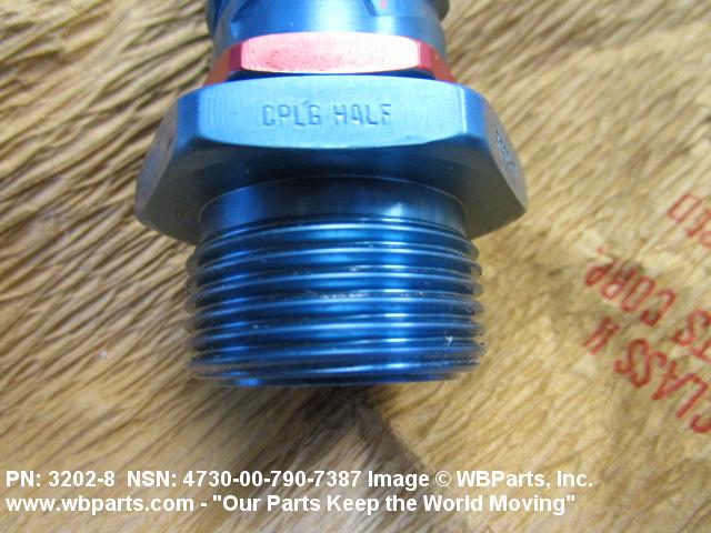4730-00-790-7387 A fluid line fitting having a pipe, tube or hose connection or a through hole to accommodate a BOLT, FLUID PASSAGE on one end. The other end must have an internal or external quick disconnect feature for connecting a mating part to form a quick disconnect coupling assembly. The fitting may incorporate a self-sealing feature for the purpose of automatically shutting off the flow of fluid when disconnected from its mating half. For self-sealing fittings with an external or internal threaded disconnect end, see COUPLING HALF, SELF-SEALING. See also, CONNECTOR, MULTIPLE, FLUID PRESSURE LINE.