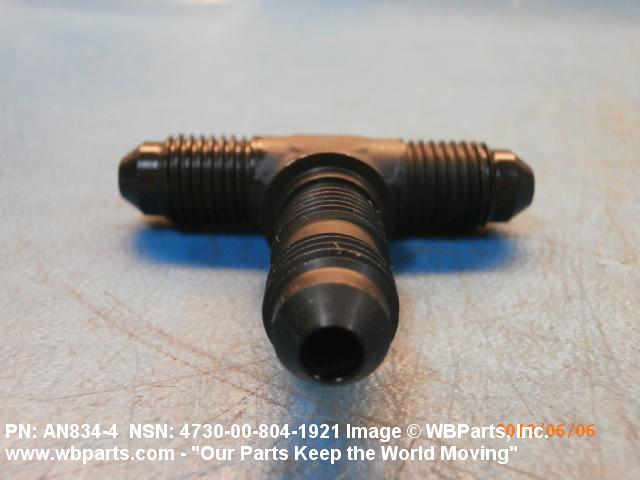 4730-00-804-1921 A fitting having three connections with the branch connection fixed at 90 degrees (1.5705 radians) to the run. The connections have machine threads (straight threads other than pipe or hose series) designed to accommodate a tube, or are unthreaded and designed to accommodate a tube. It may have side inlet(s). It is used as a junction at the intersection of a tube or tube fitting.