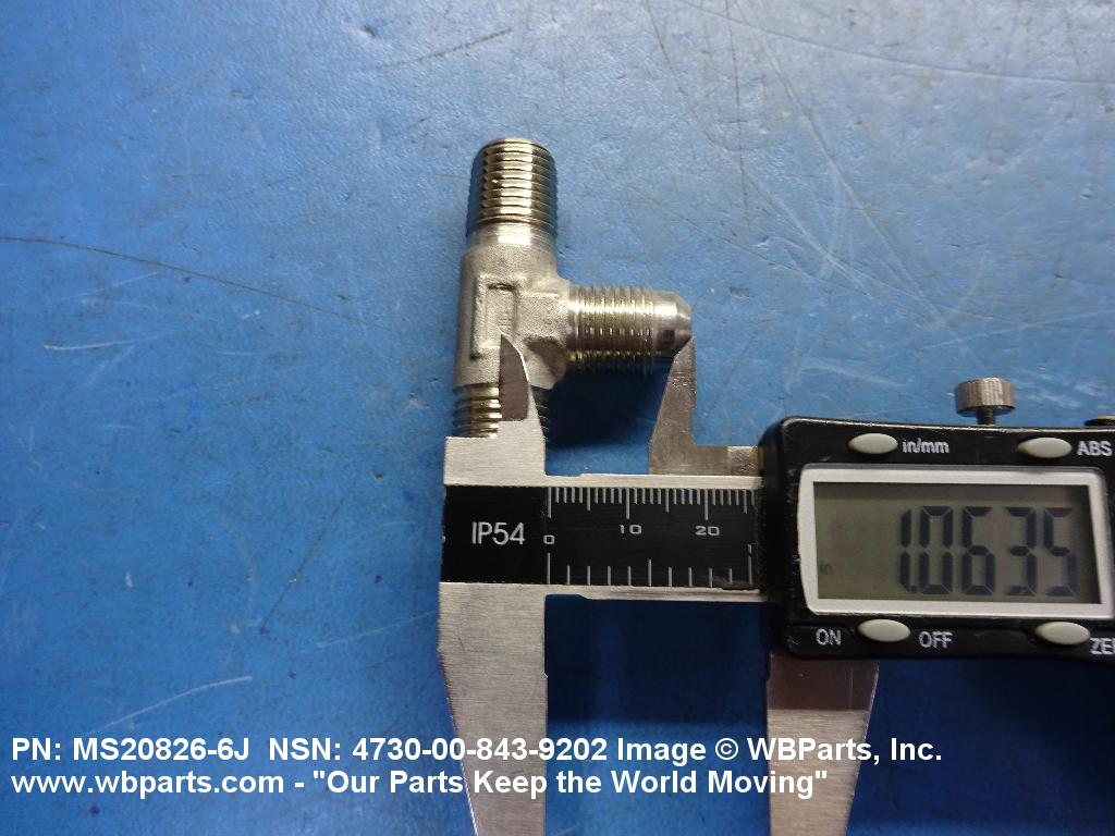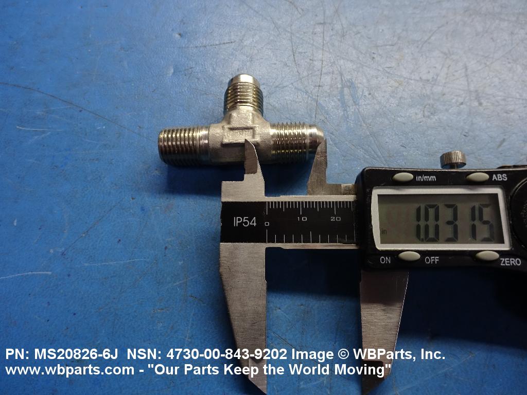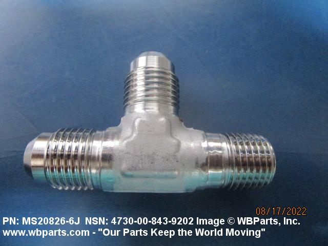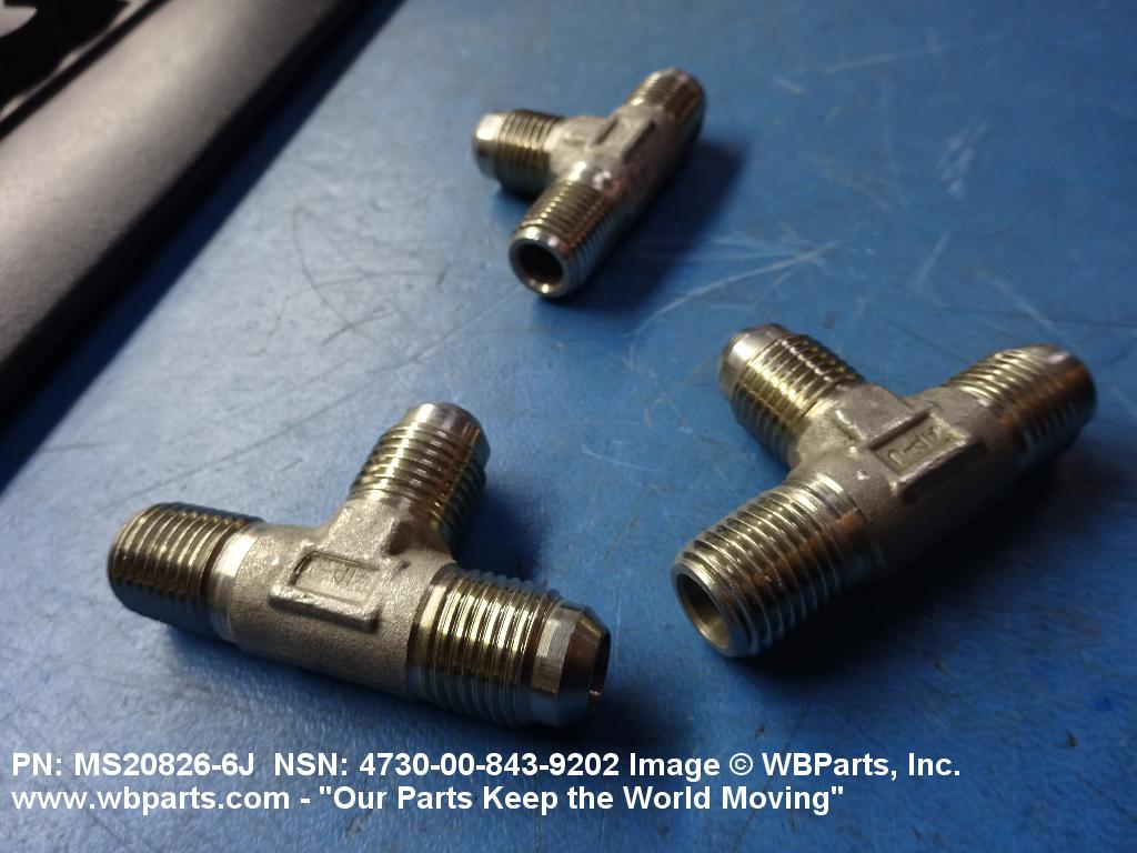 4730-00-843-9202 A fitting having three connections with the branch connection fixed at 90 degrees (1.5705 radians) to the run. The pipe connection(s) has standard pipe threads, or is unthreaded and designed to accommodate a pipe. The tube connection(s) has machine threads (straight threads other than pipe or hose series) designed to accommodate a tube, or is unthreaded and designed to accommodate a tube. It may have side inlet(s). It is used as a junction at the intersection of pipe or pipe fitting and a tube or tube fitting.