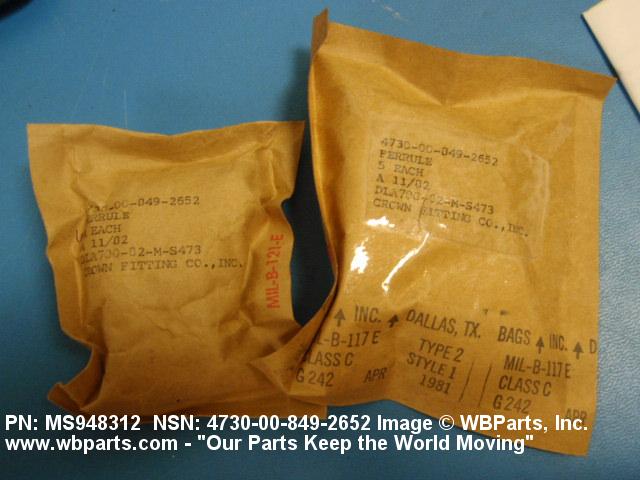 NSN 4730-00-849-2652 MS948312, MS9483-12, 00-849-2652