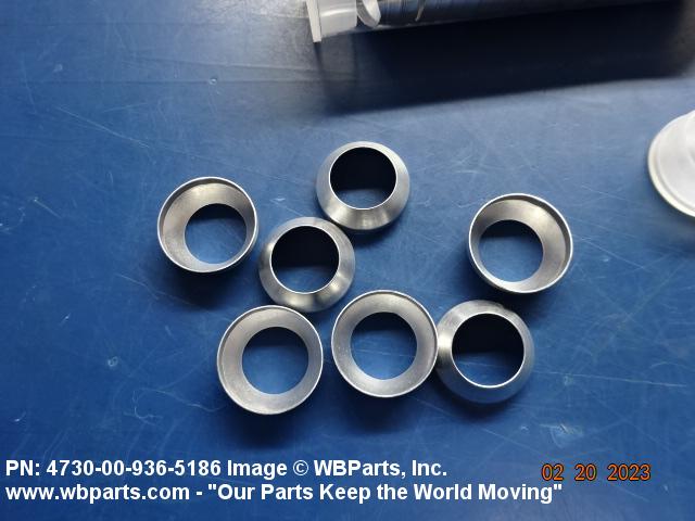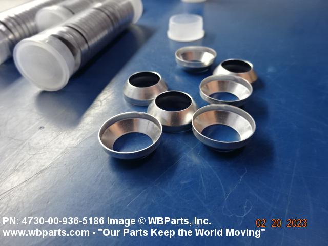 4730-00-936-5186 A cylindrical soft metallic crush item used to seal high pressure flared tube connections. It is designed to be inserted between the conical surface of a flared tube fitting and the inner surface of the flared end of the connecting tube.
