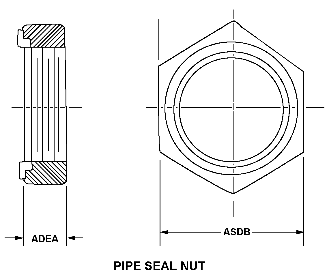 4730-00-971-1545 A hexagonal nut containing internal tapered pipe threads. It has raised undetachable sealing member on the face of the bearing surface. The item, when installed, provides a method of sealing the connection at the boss or mating surface. It does not provide any method for locking at the connection. See LOCKNUT, PIPE.