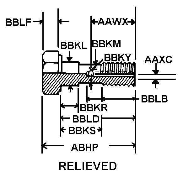 | LENGTH FROM BEARING SURFACE OF WRENCHING FEATURE TO END OF SECOND DIAMETER | 0.781 INCHES NOMINAL |
