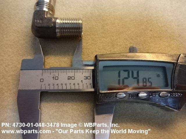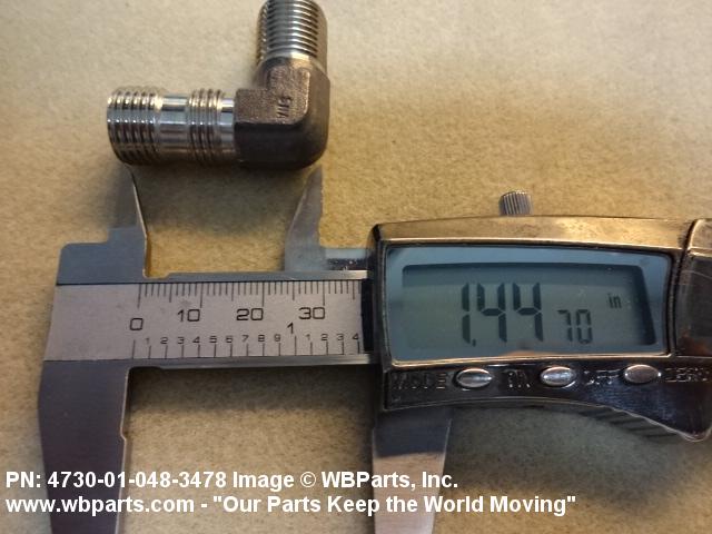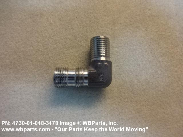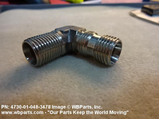 4730-01-048-3478 A fitting that forms an angle of less than 180 degrees (3.141 radians) from a straight flow. Both connecting ends have machine threads (straight threads other than pipe or hose series) designed to accommodate a tube or is unthreaded and designed to accommodate a tube. It may have side or heel inlet(s). See also ELBOW, PIPE and CONNECTOR, MULTIPLE, FLUID PRESSURE LINE.