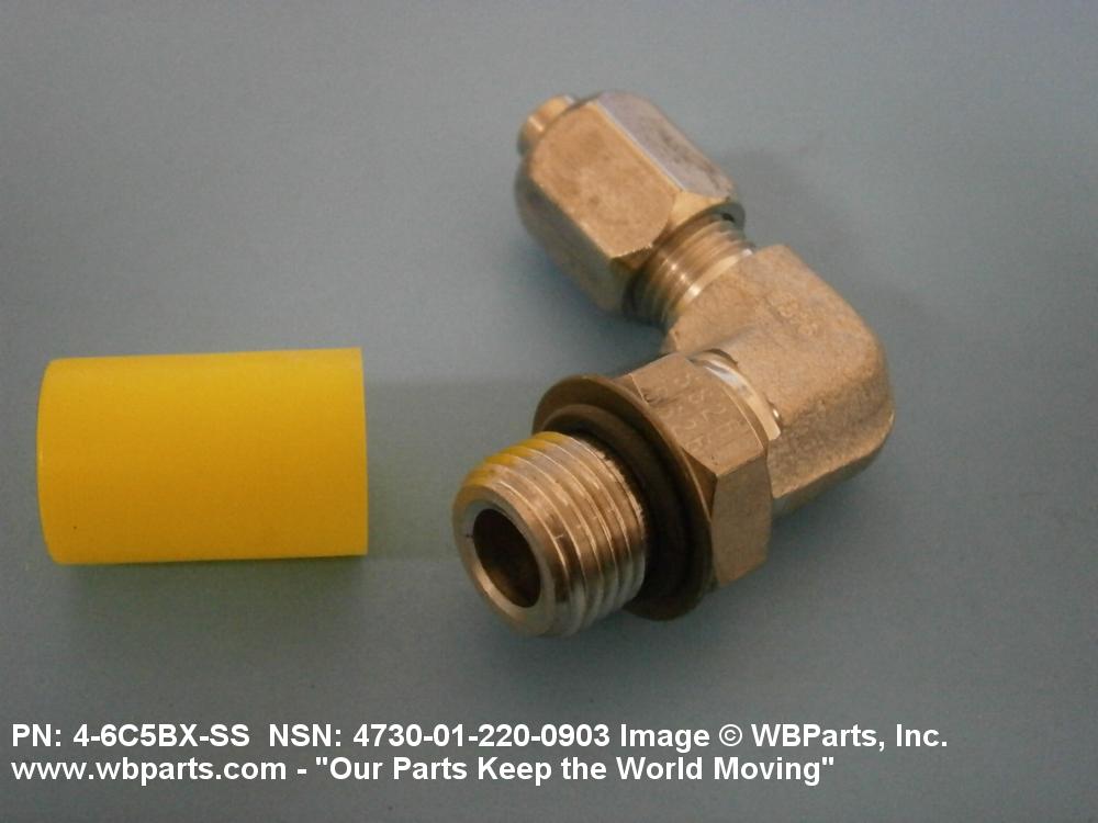 4730-01-089-9179 A fitting that forms an angle of less that 180 degrees (3.141 radians) from a straight flow. One connecting end has machine threads (straight threads other than pipe or hose series) designed to accommodate a tube or is unthreaded and designed to accommodate a tube. The other end has external or internal machine threads (straight threads other than pipe or hose series) and is designed to facilitate a gasket, preformed packing, washer, or the like, to form a seal at the boss. It may have side or heel inlet(s). It is designed to connect a tube or tube fitting to a boss or boss fitting on items such as tanks, housings, valve fittings, or the like.