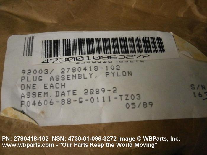 Part Alternates: 2780418102, 2780418-102, 4730-01-096-3272, 01-096-3272, 4730010963272, 010963272