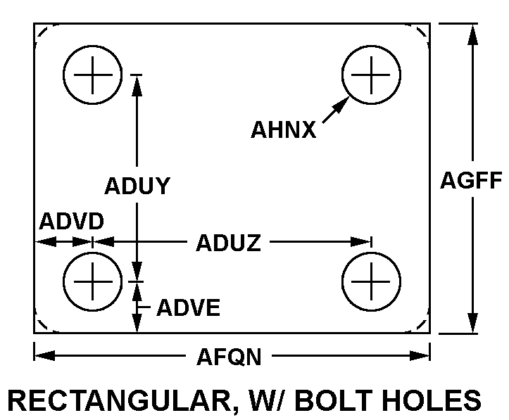 | STYLE DESIGNATOR | 9 RECTANGULAR, WITH BOLT HOLES |