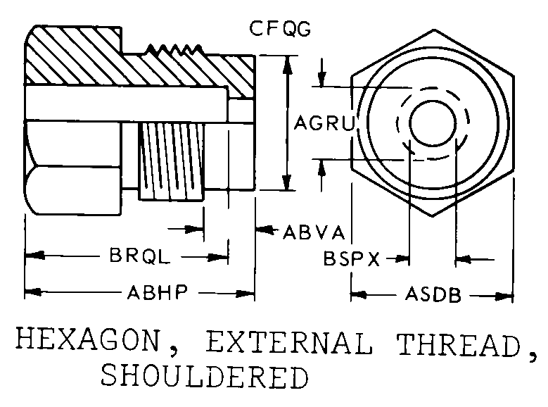 | STYLE DESIGNATOR | C5 HEXAGON, EXTERNAL THREAD, SHOULDERED |