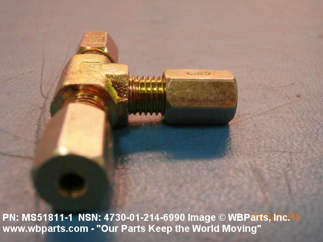 4730-01-214-6990 A fitting having three connections with the branch connection fixed at 90 degrees (1.5705 radians) to the run. The connections have machine threads (straight threads other than pipe or hose series) designed to accommodate a tube, or are unthreaded and designed to accommodate a tube. It may have side inlet(s). It is used as a junction at the intersection of a tube or tube fitting.