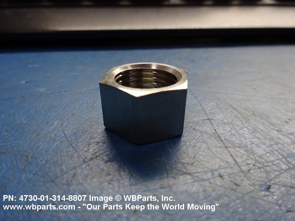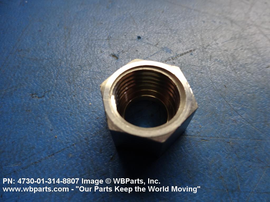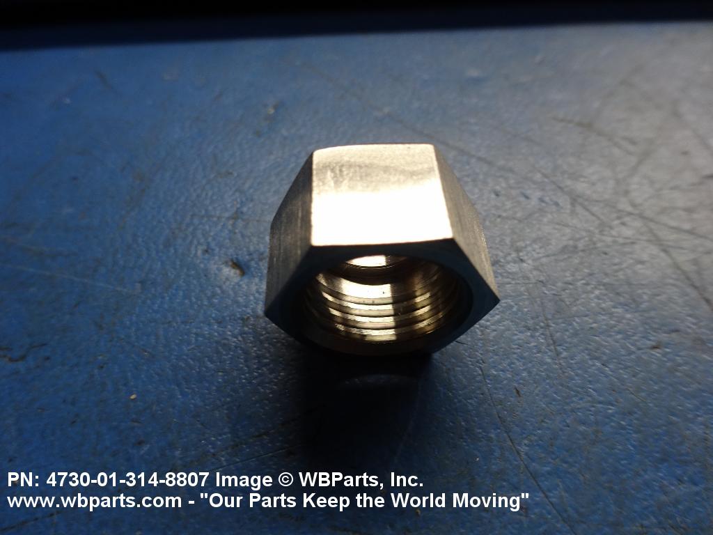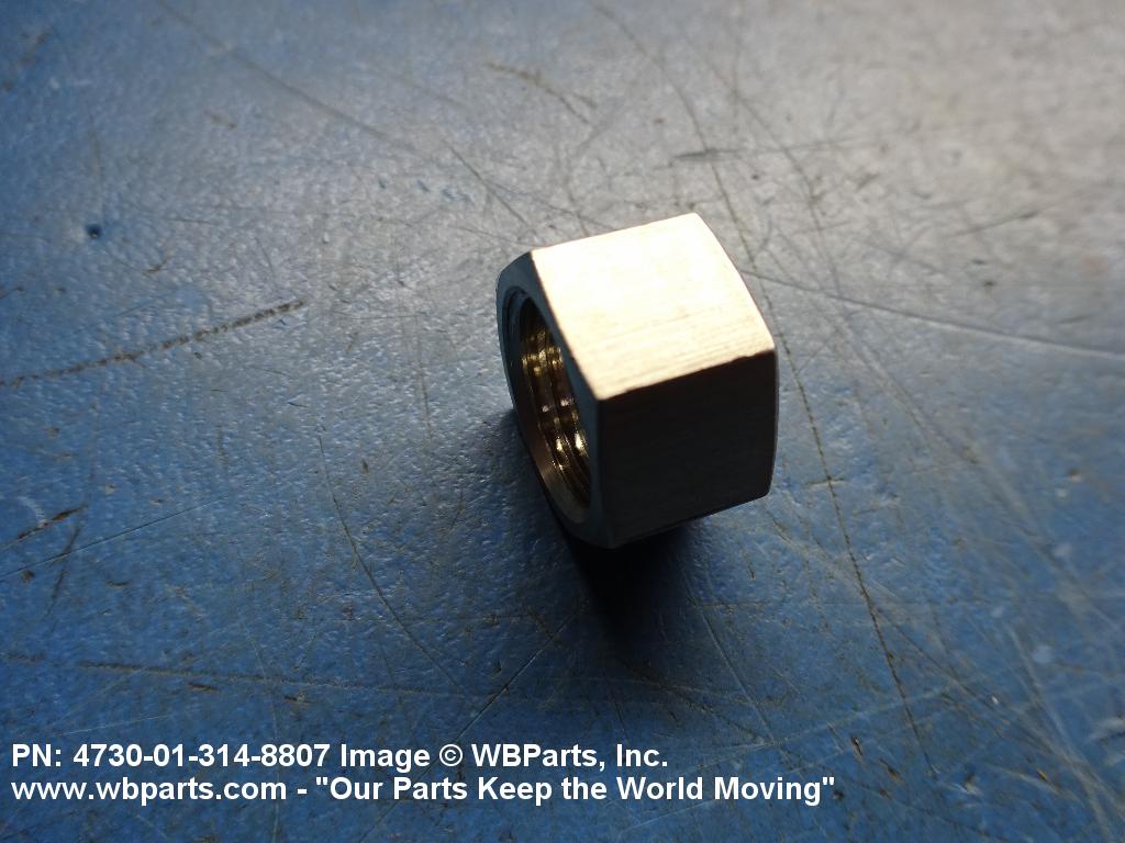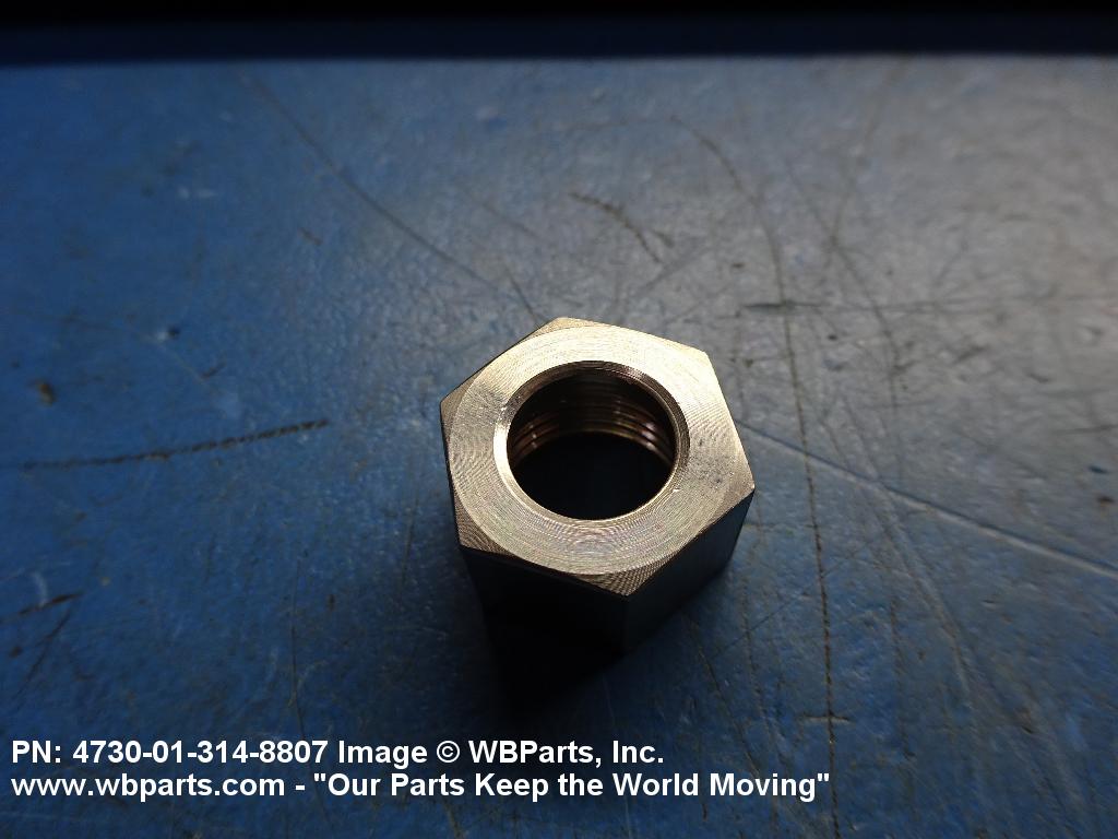 4730-01-314-8807 An internally threaded nut which has an internal seat or shoulder designed to engage the nut retaining flange of a union tailpiece. The threaded portion is used to engage the thread piece of a union, union elbor or the like. Excludes NUT (1), TUBE COUPLING.202109000004730000000