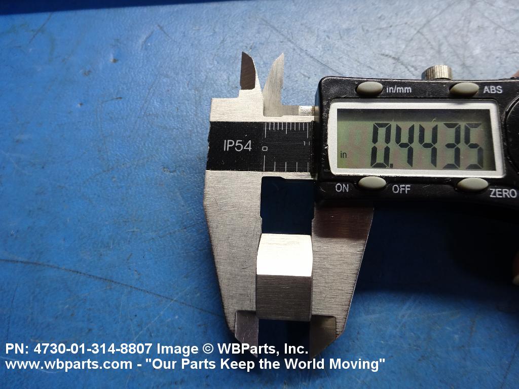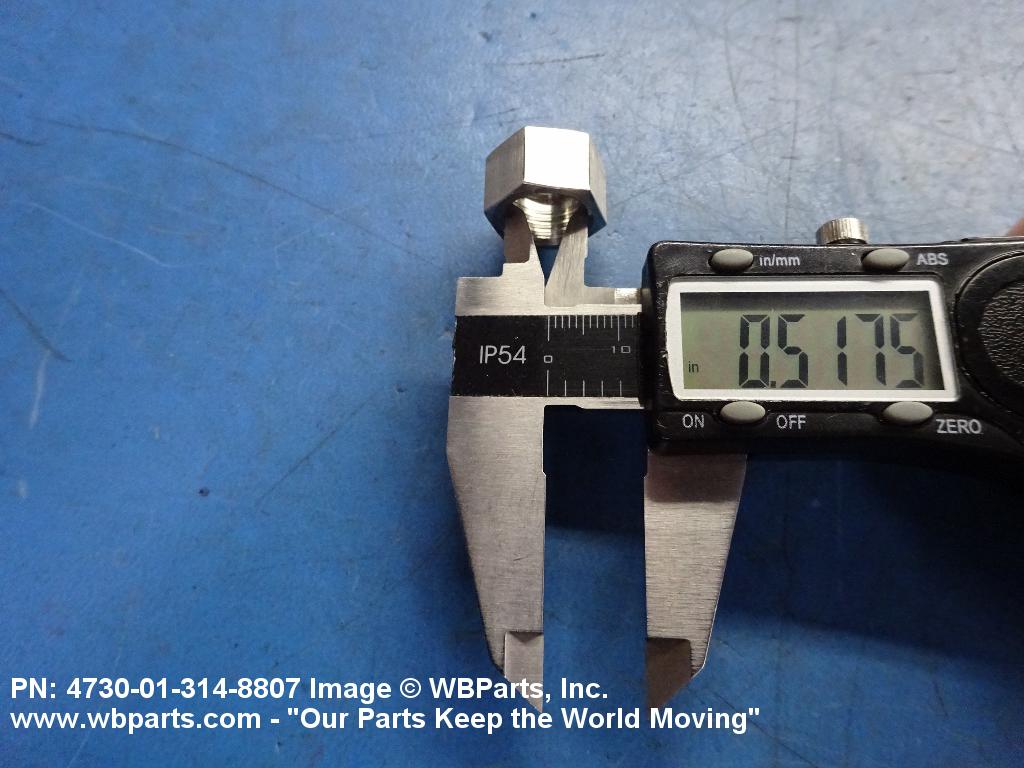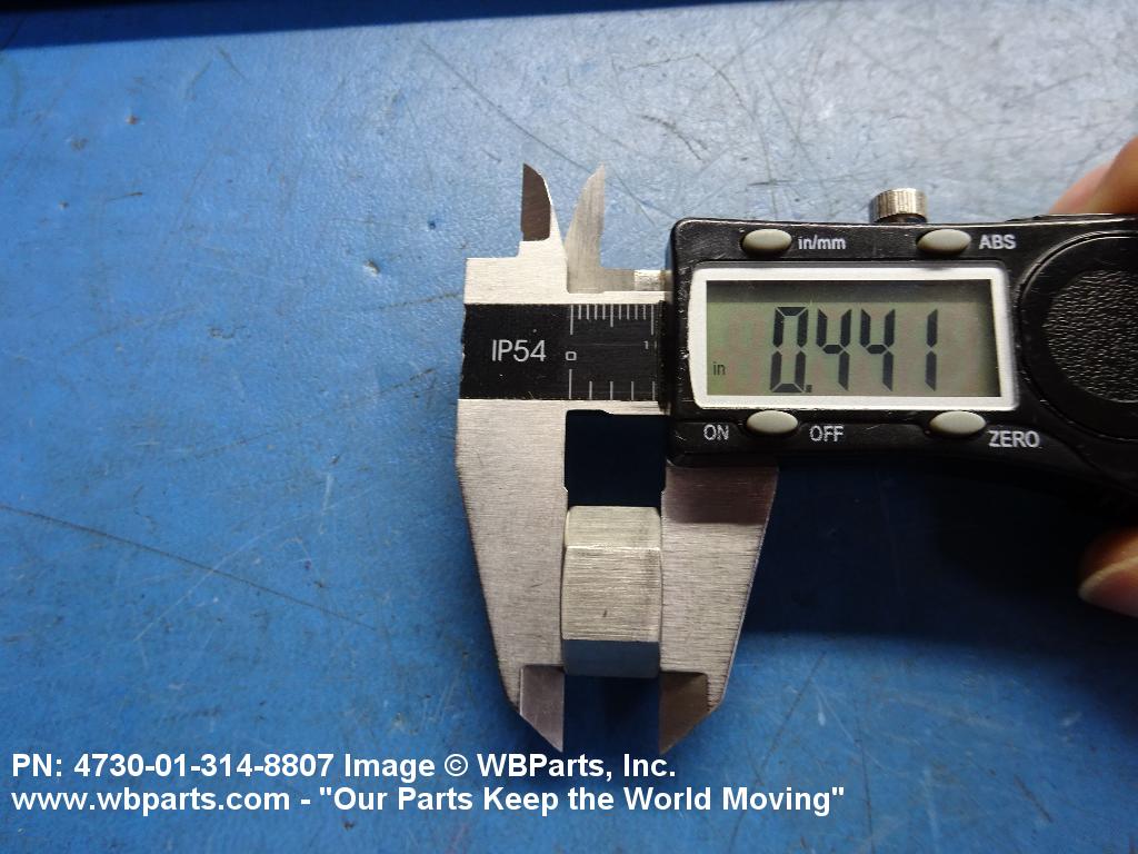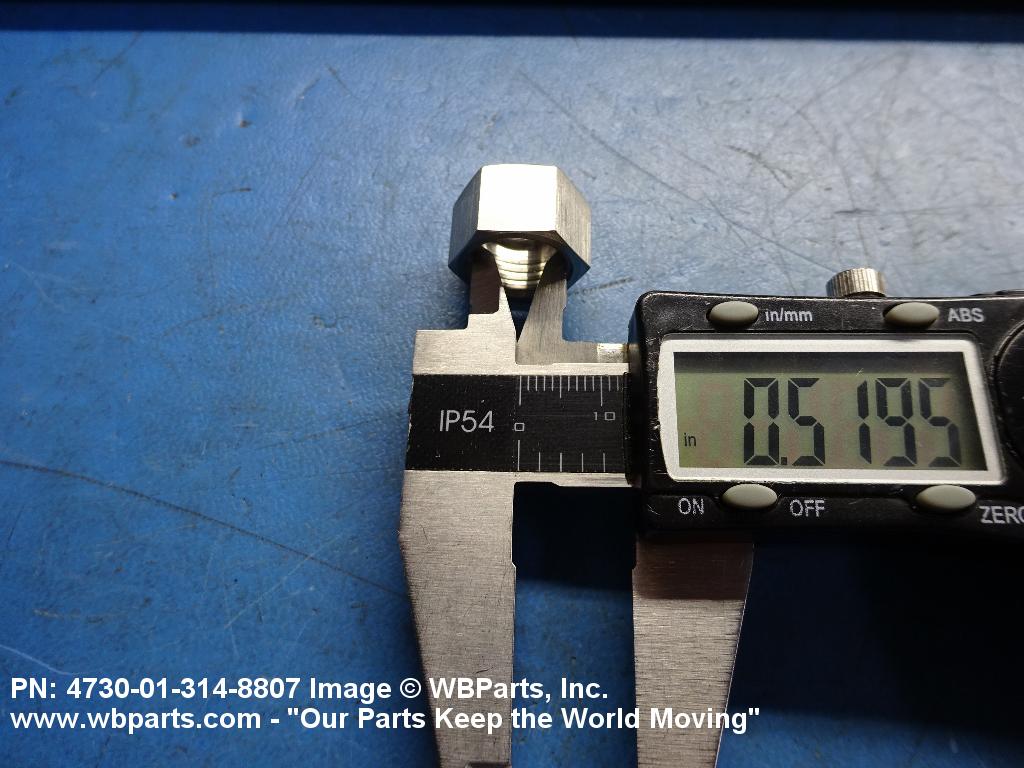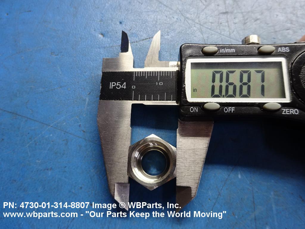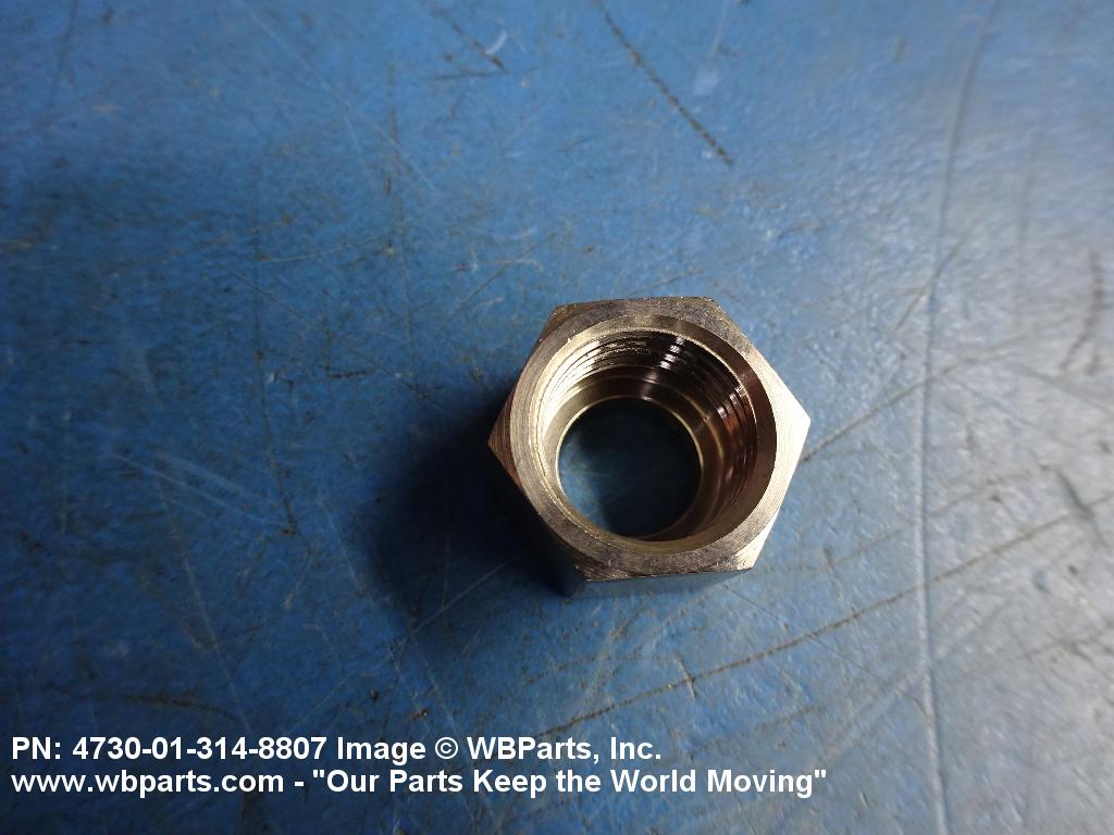 4730-01-314-8807 An internally threaded nut which has an internal seat or shoulder designed to engage the nut retaining flange of a union tailpiece. The threaded portion is used to engage the thread piece of a union, union elbor or the like. Excludes NUT (1), TUBE COUPLING.202109000004730000000