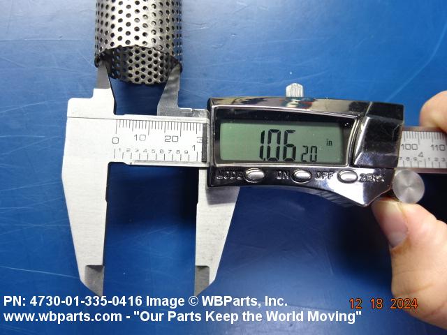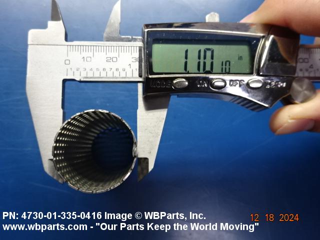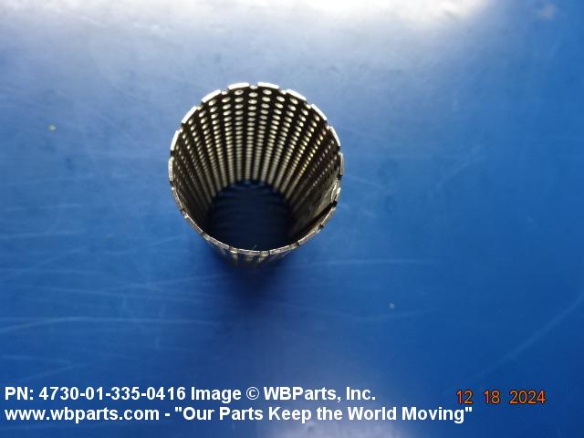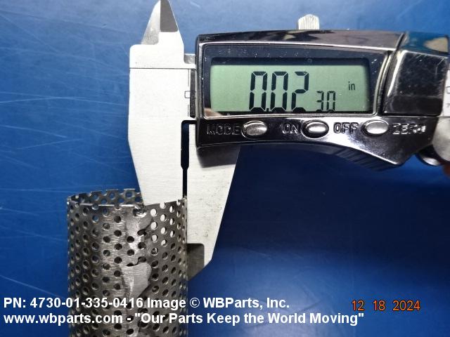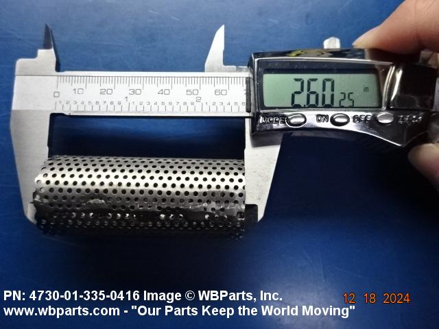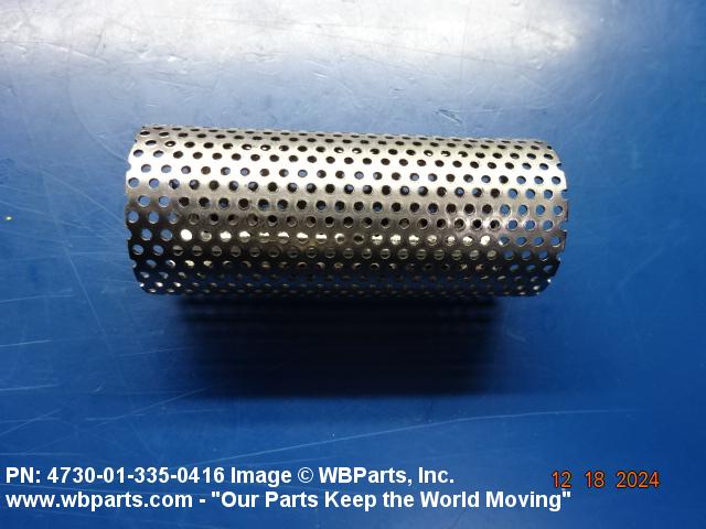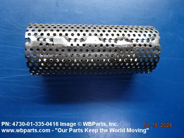 4730-01-335-0416 A replaceable device designed to remove solid particles from flowing liquids. The removal of particles is accomplished by porous material (metallic or non-metallic), wire mesh, perforated metal, or the like, constructed so the liquid can flow through the device while the solid particles are retained. It is designed to fit into a STRAINER, SEDIMENT (or similar cavity). It may have a reinforcement to prevent collapsing, distorting or rupturing. The degree of particles removed must be nominally rated at 50 microns, or more, or absolutely rated at 75 microns, or more. See also FILTER ELEMENT, FLUID.