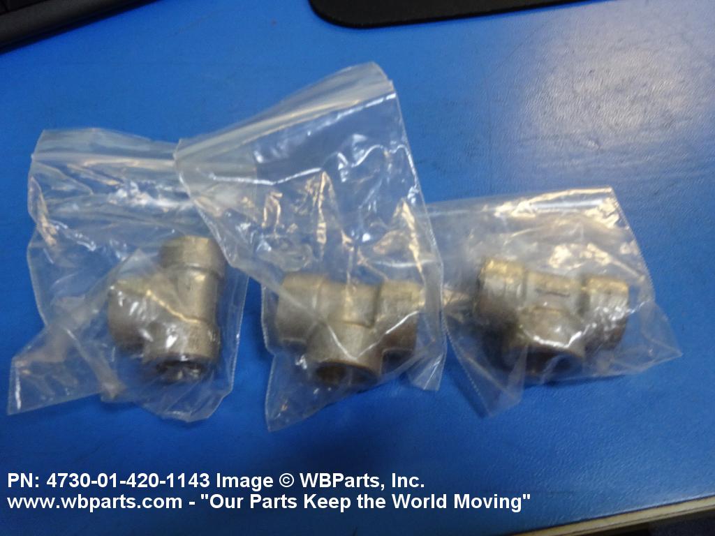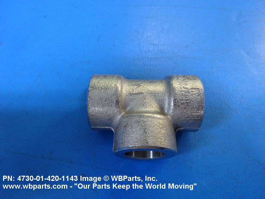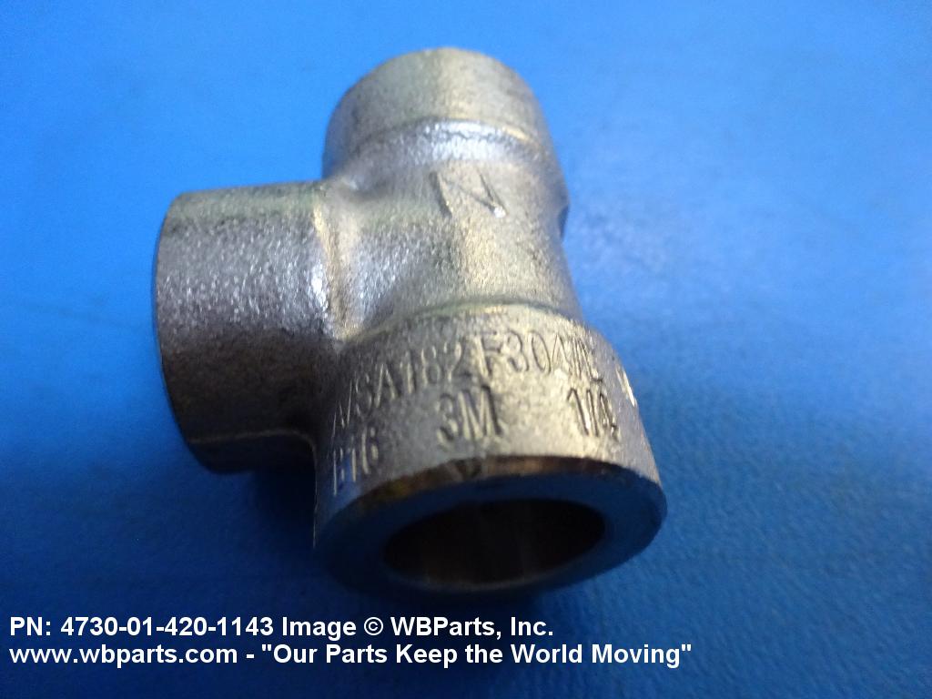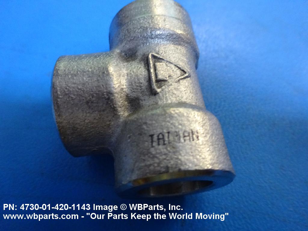 4730-01-420-1143 A fitting having three connections with the branch connection fixed at 90 degrees (1.5705 radians) to the run. The connections have standard pipe threads or 1s unthreaded and designed to accommodate a pipe. It may have side inlet(s). It is used as a junction at the intersection of pipe or pipe fittings.