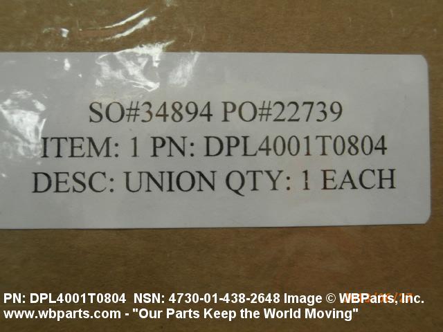 Part Alternates: DPL4001, DPL4001T0804, 7D0447T0804, 4730-01-438-2648, 01-438-2648, 4730014382648, 014382648