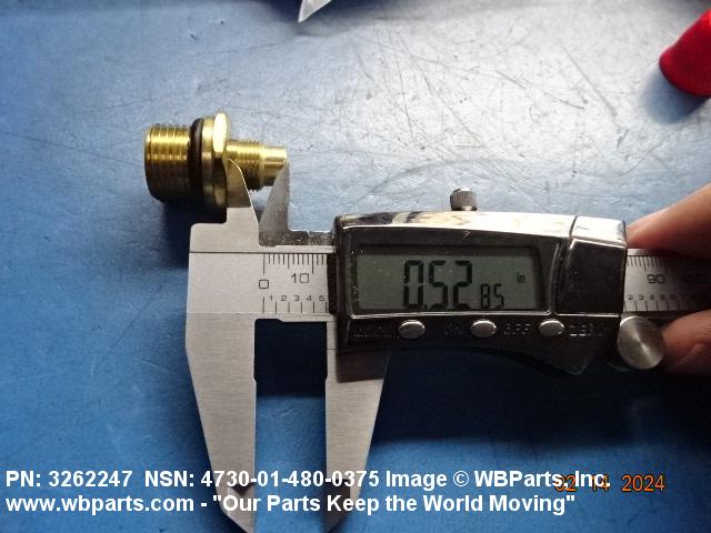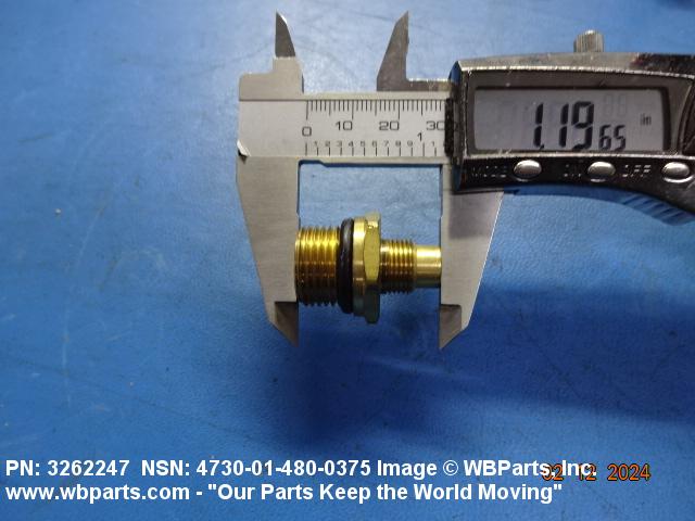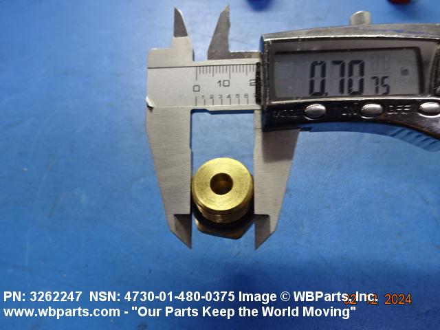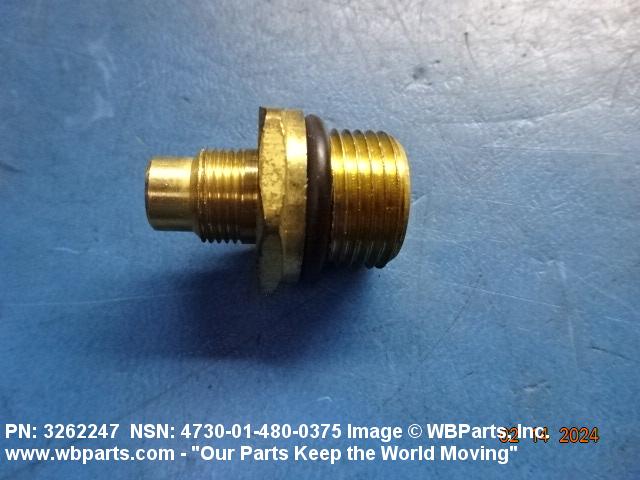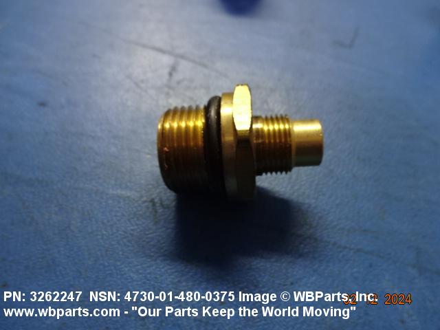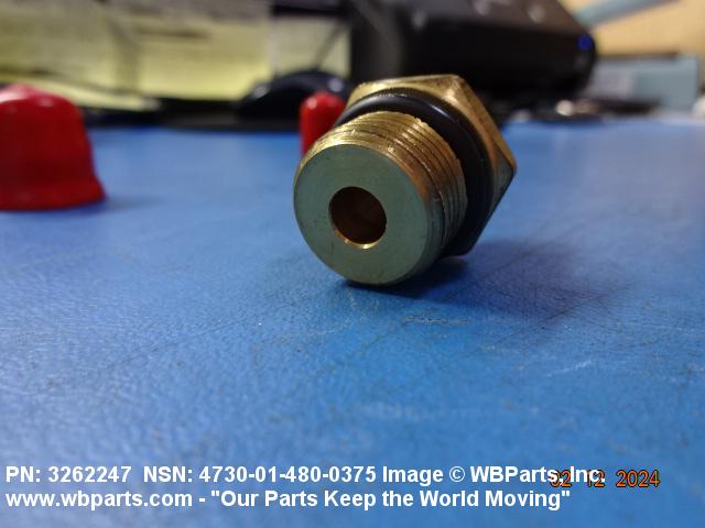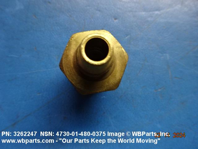 4730-01-480-0375 An adapter having machine threads (straight threads other than pipe or hose series) designed to accommodate a tube on one end or an unthreaded end designed to accommodate a tube. The other end has external or internal machine threads (straight threads other than pipe or hose series) and is designed to facilitate a gasket, preformed packing, washer, or the like to form a seal at the boss. It is designed to join a tube or tube fitting to a boss or boss fitting in a straight line on items such as tanks, housings, valve fittings, and the like. See also COUPLING, TUBE and NIPPLE, TUBE.
