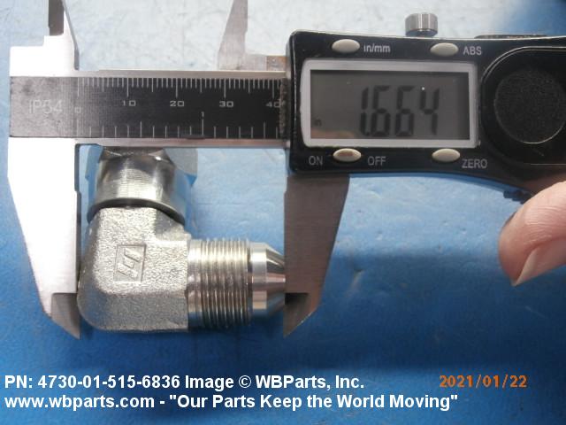 4730-01-515-6836 A fitting that forms an angle of less than 180 degrees (3.141 radians) from the straight flow. One connecting end has a swivel flange designed to permit axial rotation of the fitting, usually for the ease of installation, prior to securing it to a flange or mounting pad. The other end has machine threads (straight threads other than pipe or hose series) designed to accommodate a swivel flange. It may have side and/or heel inlets.