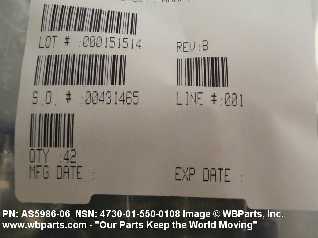 NSN 4730-01-550-0108 AS598606, AS5986-06, 01-550-0108