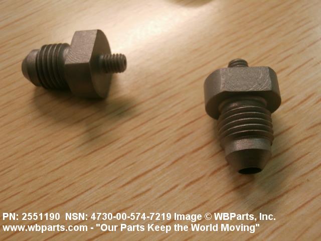 4730-01-592-6060 An adapter having machine threads (straight threads other than pipe or hose series) designed to accommodate a tube on one end or an unthreaded end designed to accommodate a tube. The other end has external or internal machine threads (straight threads other than pipe or hose series) and is designed to facilitate a gasket, preformed packing, washer, or the like to form a seal at the boss. It is designed to join a tube or tube fitting to a boss or boss fitting in a straight line on items such as tanks, housings, valve fittings, and the like. See also COUPLING, TUBE and NIPPLE, TUBE.
