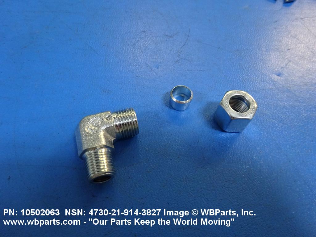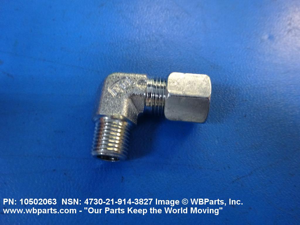 4730-21-914-3827 A fitting that forms an angle of less than 180 degrees (3.141 radians) from a straight flow. Both connecting ends have machine threads (straight threads other than pipe or hose series) designed to accommodate a tube or is unthreaded and designed to accommodate a tube. It may have side or heel inlet(s). See also ELBOW, PIPE and CONNECTOR, MULTIPLE, FLUID PRESSURE LINE.