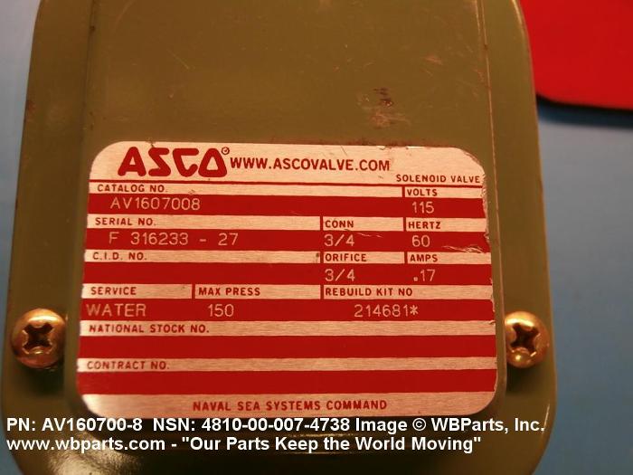 | AV-160700-8 | 60XL5 | ASCO VALVE MANUFACTURING LLC |