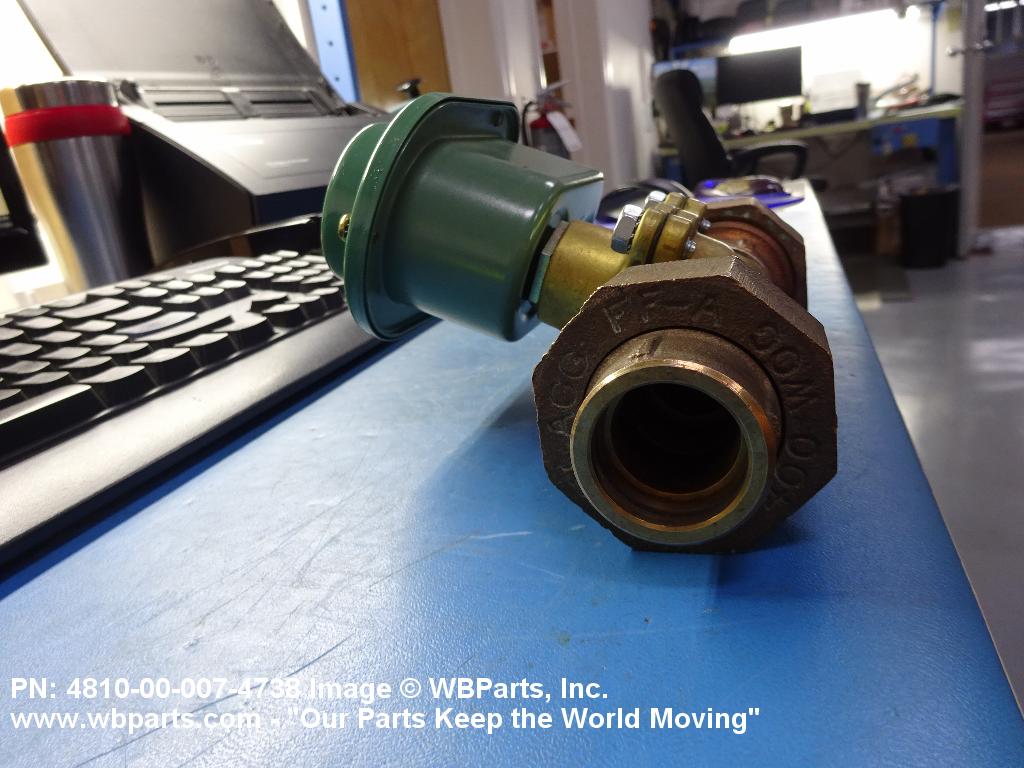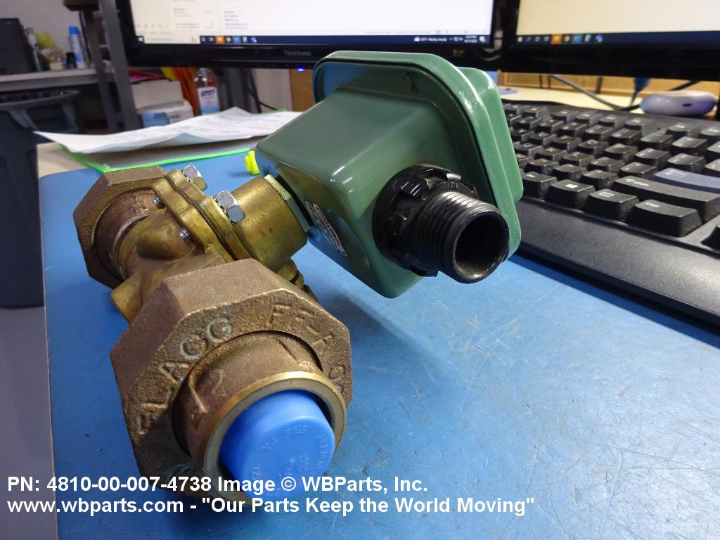 4810-00-007-4738 A valve having two or more ports with valve stem or pilot needle in a normally open or closed position. It is specifically designed to stop or start or change the flow of fluid by means of the magnetic action of an electric coil on a moveable core or plunger. The valve may be equipped with a manual opening or closing device. For items with three or more ports that utilize a reciprocating slide with recess areas which mate with ports in an integral or replaceable ported sleeve, see VALVE (1), LINEAR, DIRECTIONAL CONTROL. It may be inline or cartridge (manifold) design. Excludes VALVE (1), BUTTERFLY.