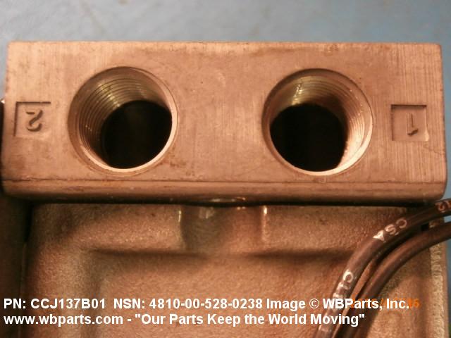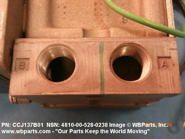 4810-00-528-0238 A valve having two or more ports with valve stem or pilot needle in a normally open or closed position. It is specifically designed to stop or start or change the flow of fluid by means of the magnetic action of an electric coil on a moveable core or plunger. The valve may be equipped with a manual opening or closing device. For items with three or more ports that utilize a reciprocating slide with recess areas which mate with ports in an integral or replaceable ported sleeve, see VALVE (1), LINEAR, DIRECTIONAL CONTROL. It may be inline or cartridge (manifold) design. Excludes VALVE (1), BUTTERFLY.