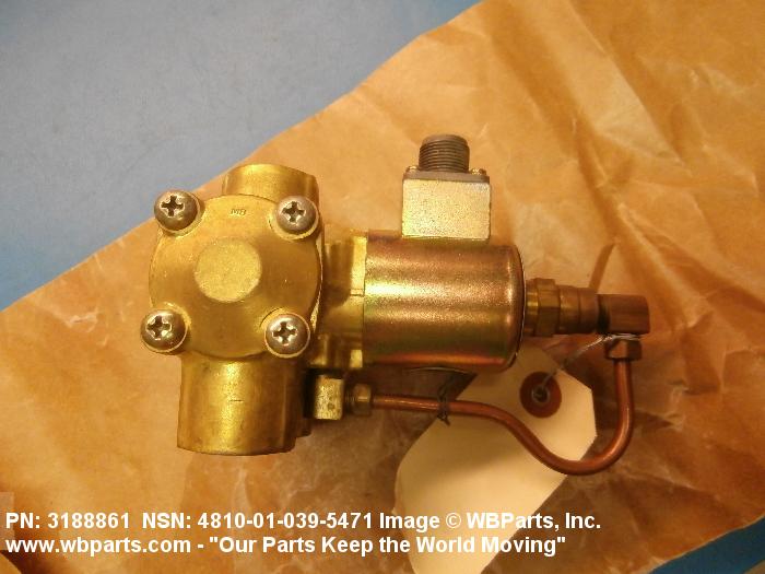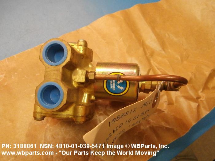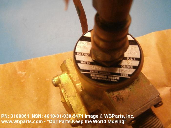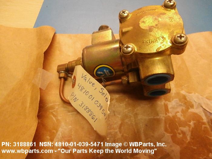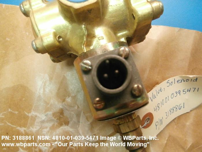 4810-01-039-5471 A valve having two or more ports with valve stem or pilot needle in a normally open or closed position. It is specifically designed to stop or start or change the flow of fluid by means of the magnetic action of an electric coil on a moveable core or plunger. The valve may be equipped with a manual opening or closing device. For items with three or more ports that utilize a reciprocating slide with recess areas which mate with ports in an integral or replaceable ported sleeve, see VALVE (1), LINEAR, DIRECTIONAL CONTROL. It may be inline or cartridge (manifold) design. Excludes VALVE (1), BUTTERFLY.