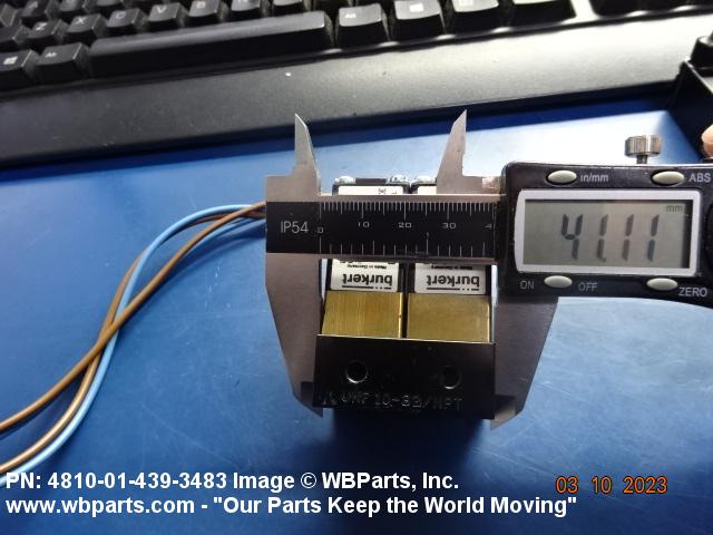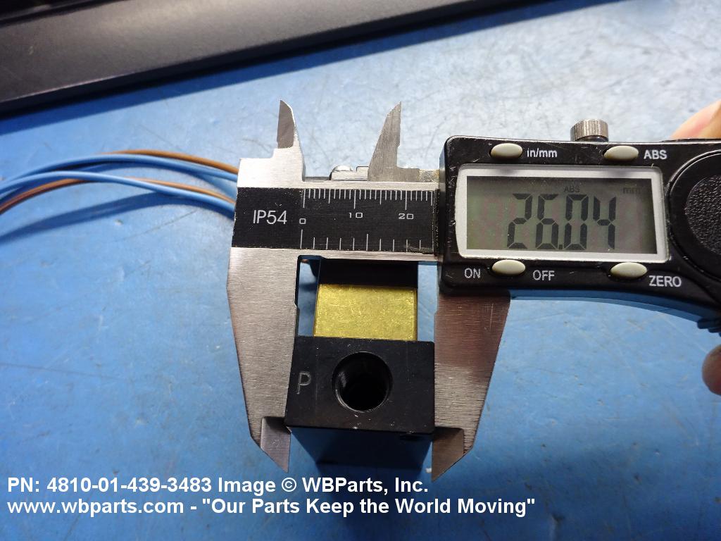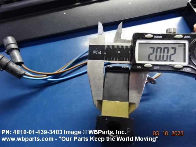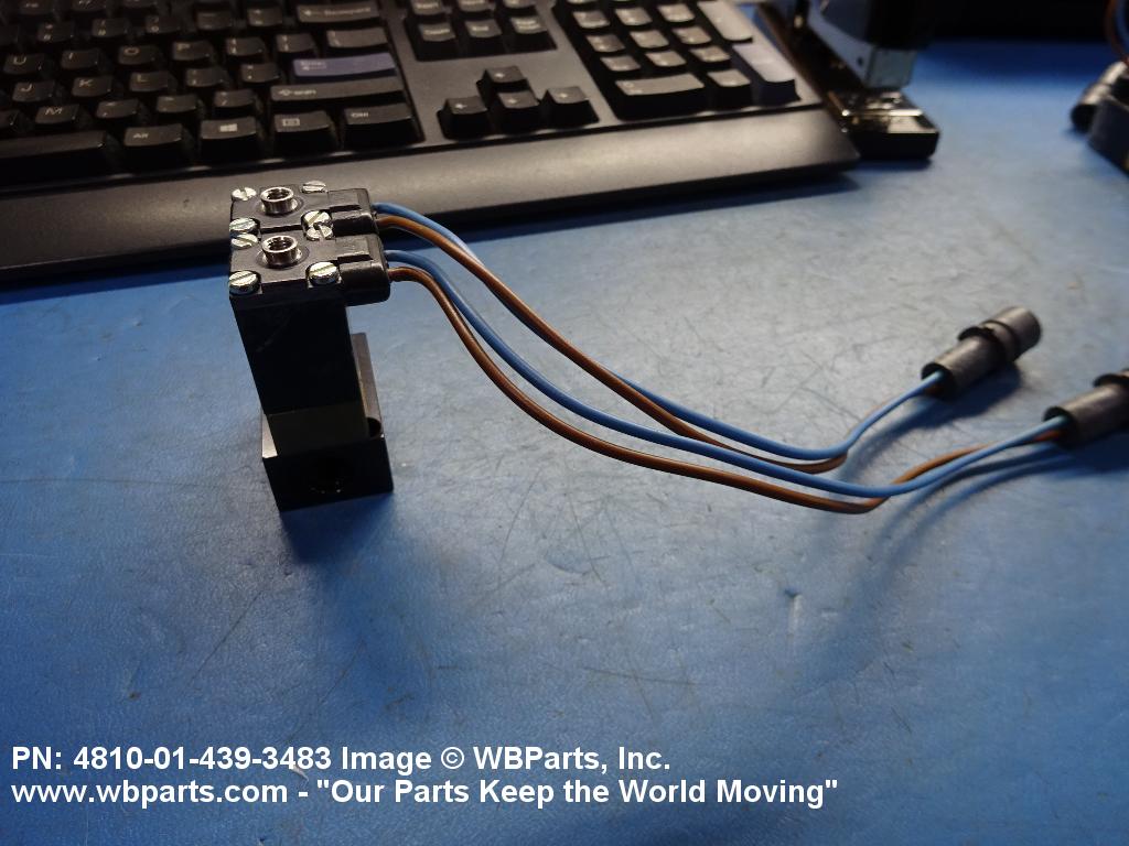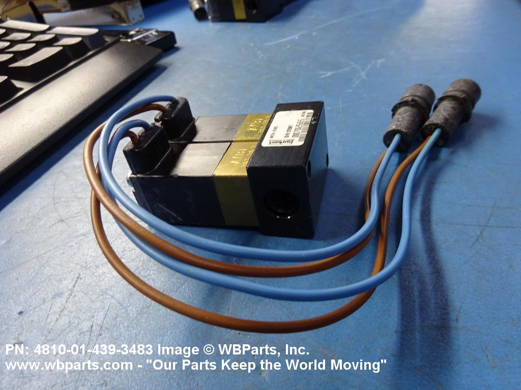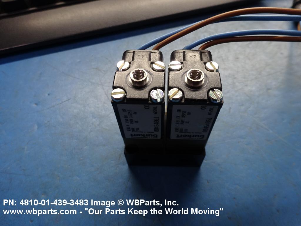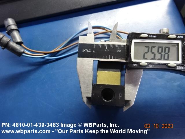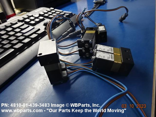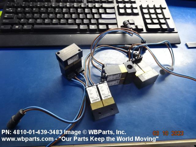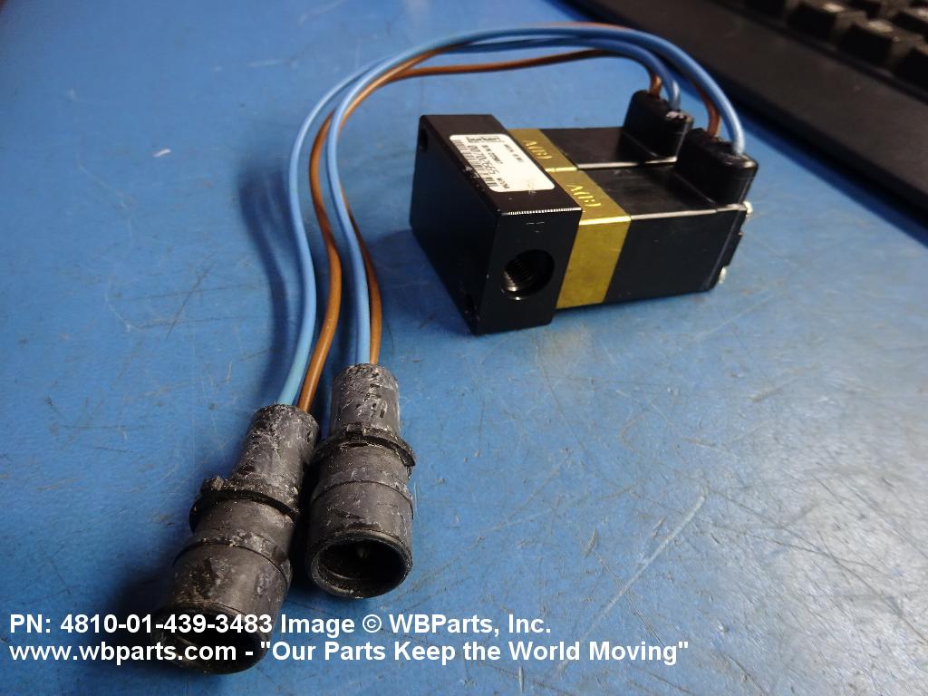 4810-01-439-3483 A valve having two or more ports with valve stem or pilot needle in a normally open or closed position. It is specifically designed to stop or start or change the flow of fluid by means of the magnetic action of an electric coil on a moveable core or plunger. The valve may be equipped with a manual opening or closing device. For items with three or more ports that utilize a reciprocating slide with recess areas which mate with ports in an integral or replaceable ported sleeve, see VALVE (1), LINEAR, DIRECTIONAL CONTROL. It may be inline or cartridge (manifold) design. Excludes VALVE (1), BUTTERFLY.