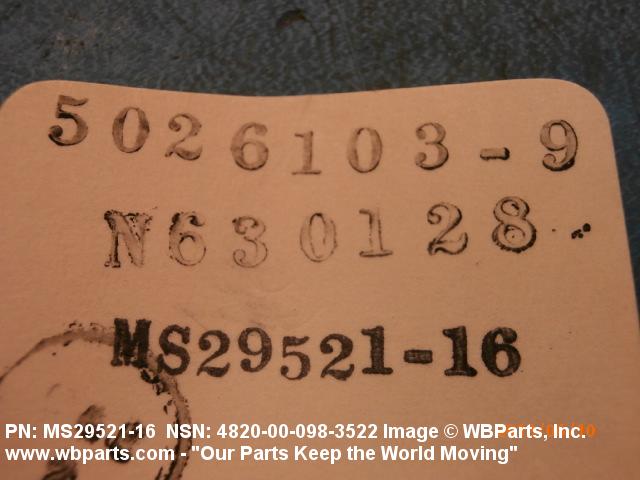 NSN 4820-00-098-3522 MS2952116, MS29521-16, MILV7899