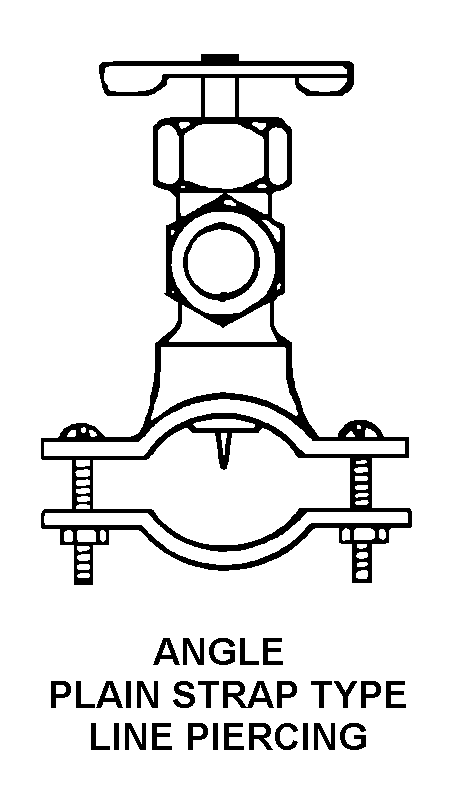 4820-00-128-9797 A valve with an outlet end connection, straight thru or at an angle. The flow of liquid or gases may be controlled by the action of stem which lifts the disks perpendicularly off the center axis of its seat or by rotation of a suitable ported seat. This valve has a connection facility which is saddled over a line and bolted, may be line drilled or line self piercing.