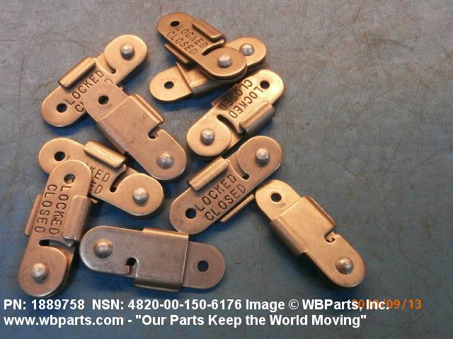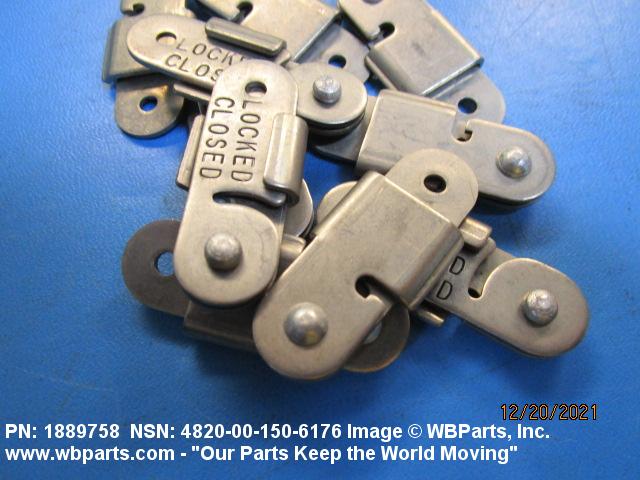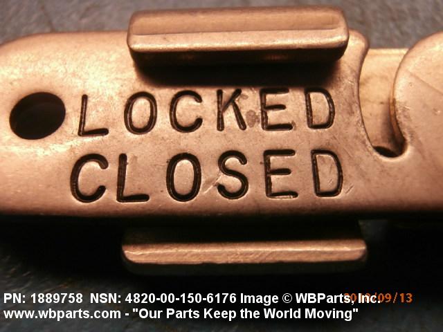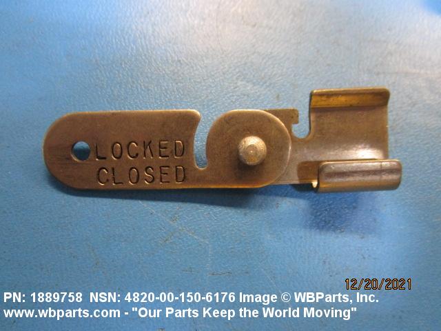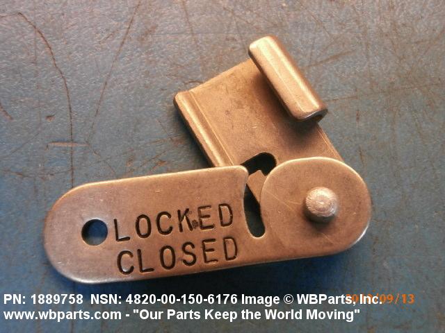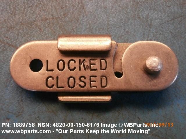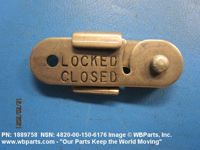 | GENERAL CHARACTERISTICS ITEM DESCRIPTION | CONSISTS OF PC TWO TO FIVE NAMEPLATE LOCKED CLOSED,MATL SPEC QQ-N-281,LEVER LOCK,MATL SPEC QQ-N-281,WASHER FLAT PLAIN NO 6 MATL SPEC FF-W-92,RIVET RD HD 0.125 IN. DIA 0.500 IN. LG MATL ALUMINUM,USED ONLOCKING DEVICES FOR E.B. STD AND COMMERCIAL VALVES |