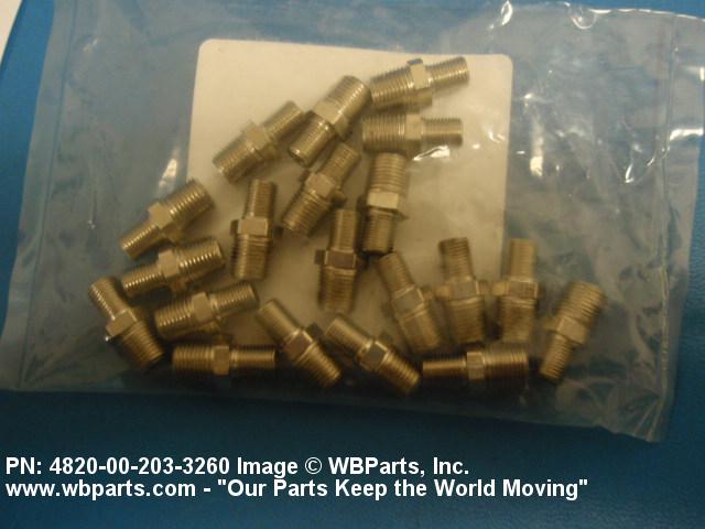 4820-00-203-3260 A valve, designed for attachment to pressure tanks and/or mechanical equipment for the purpose of permitting an increase, decrease, and the gaging of pressure (similar to tire valves) within a confining chamber carrying compressed air, gases or oil.
