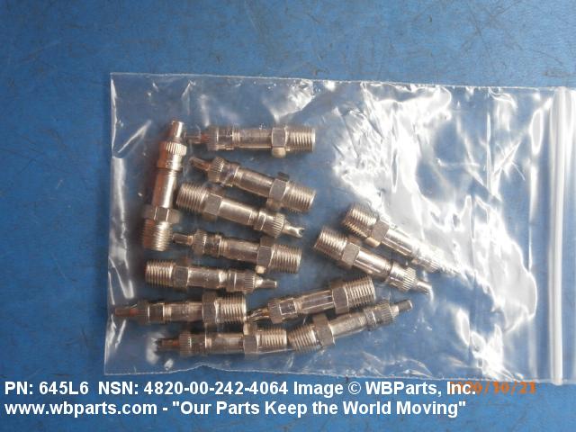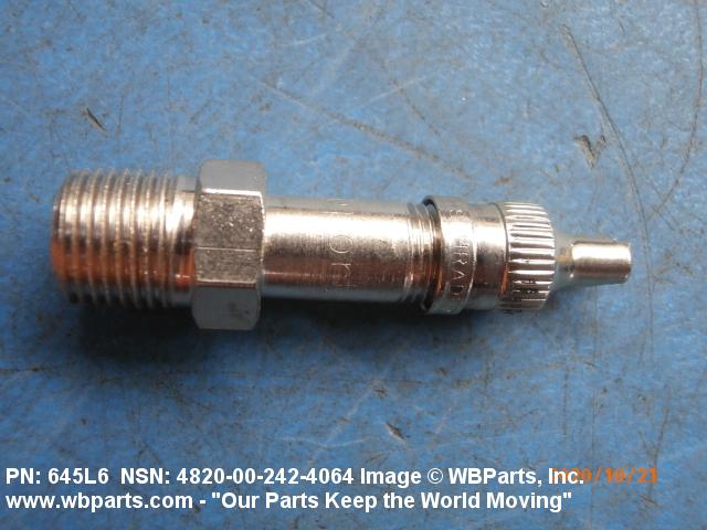 4820-00-242-4064 A valve, designed for attachment to pressure tanks and/or mechanical equipment for the purpose of permitting an increase, decrease, and the gaging of pressure (similar to tire valves) within a confining chamber carrying compressed air, gases or oil.