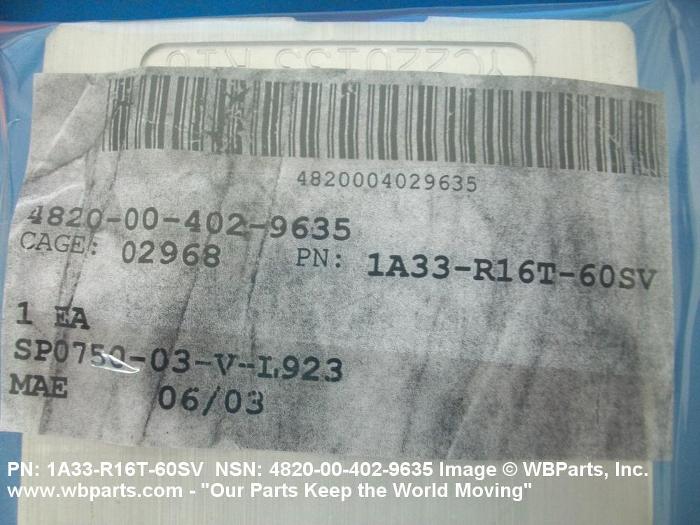 NSN 4820-00-402-9635 1A3001V0KDSC10S16ST1, 1A33R16T60S, 1A33R16T60SV