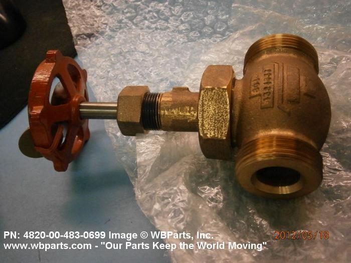 4820-00-483-0699 A valve with one inlet and one outlet connection with outlet flow parallel to inlet flow. The flow is controlled by the action of a stem which lifts the disk perpendicularly off the center axis of its seat. The stem is at a 90 degree (1.5708 radians) angle to axis of flow. Excludes VALVE, STOP-CHECK; COCK, SHUTOFF, SCREW STEM; and VALVE, SOLENOID.20248100015Valves, Powered48200018Valves, Nonpowered