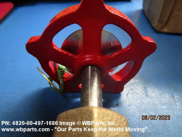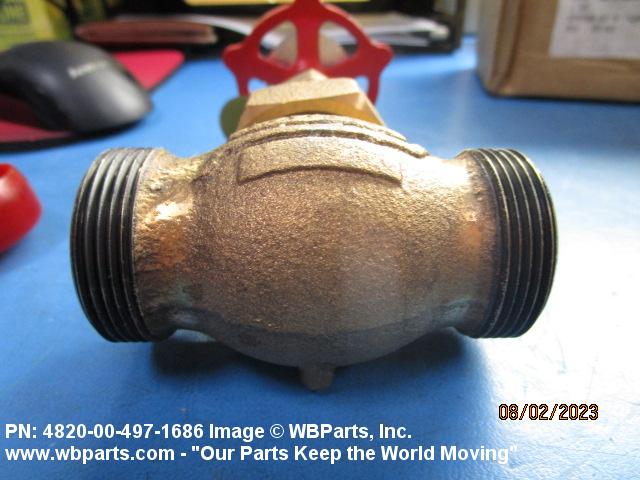 4820-00-497-1686 A valve with one inlet and one outlet connection with outlet flow parallel to inlet flow. The flow is controlled by the action of a stem which lifts the disk perpendicularly off the center axis of its seat. The stem is at a 90 degree (1.5708 radians) angle to axis of flow. Excludes VALVE, STOP-CHECK; COCK, SHUTOFF, SCREW STEM; and VALVE, SOLENOID.20248100015Valves, Powered48200018Valves, Nonpowered