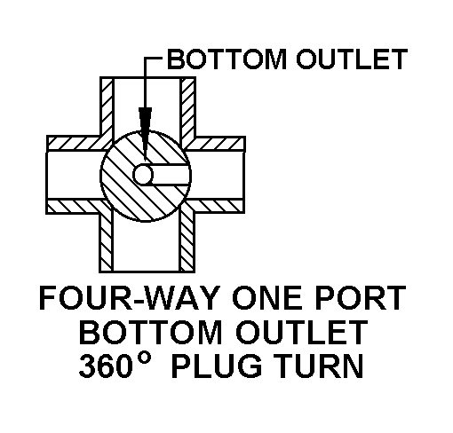 | FLOW STYLE | A23 FOUR-WAY ONE PORT BOTTOM OUTLET 360 DEGREE PLUG |