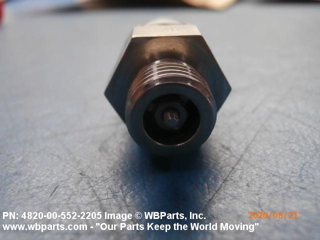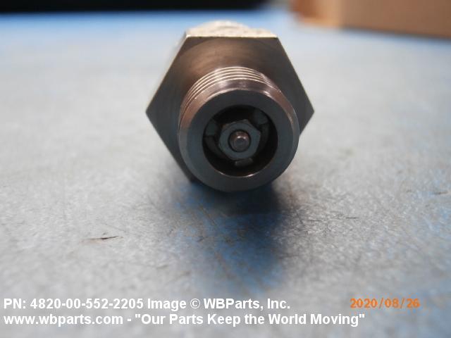 4820-00-552-2205 A valve designed to automatically release excessive pressures. It is actuated by static pressure upstream of the valve and is used as a safety valve or relief valve, and may be set to close at a predetermined pressure. It is not designed for regulation of continuously fluctuating loads. It may be inline or cartridge (manifold) design. Excludes VALVE (1), RELIEF, PRESSURE AND TEMPERATURE.