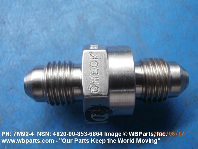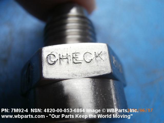 4820-00-853-6864 A valve permitting flow in one direction only. It does not have a stem, except when equipped with a lever and weight and has no pressure adjustment. It may be inline or cartridge (manifold) design.