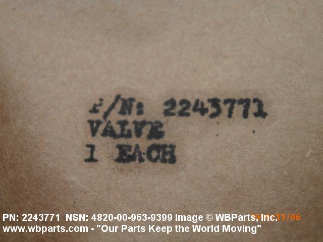 NSN 4820-00-963-9399 2243771, 37F39748, 5211086001
